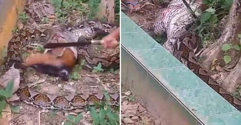 Dalam video berdurasi singkat itu, tampak jelas seekor ular piton besar melilit dan berusaha menelan seekor kambing. Salah seorang warga kemudian dengan sigap menebas tubuh ular demi menyelamatkan hewan ternaknya. Suara dalam video menyebutkan panjang ular diperkirakan mencapai 7 meter.