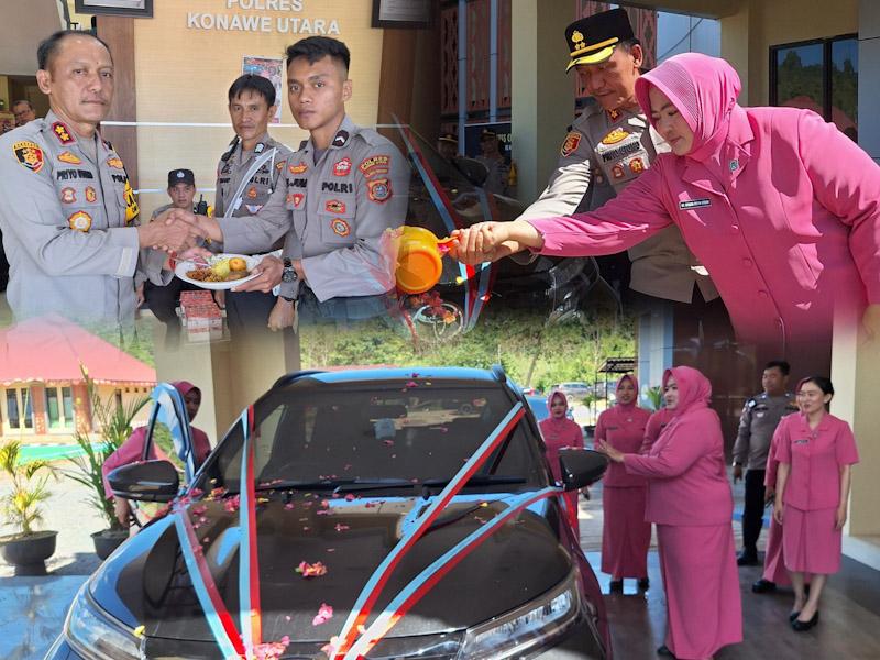 Kapolres konawe utara AKBP Priyo Utomo, S.H., S.I.K menerangkan penyerahan kendaraan roda empat jenis toyota rush untuk bhayangkari sebagai wujud kepedulian sebagai pembina bhayangkari atas kinerja bhayangkari dalam menunjang tugas-tugas polres konawe utara