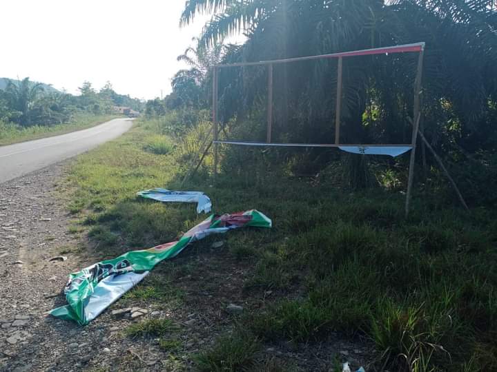 Peristiwa itu diperkirakan terjadi Seni, (16/11/2020) malam. Gambar paslon tagleni Rabu berukuran 4 kali 2 meter ini dihancurkan dengan cara di robek. Rangka baliho yang terbuat dari kayu juga di jatuhkan. Alat Peraga Kampanye (APK) itu terpasang di wilayah Tetewatu, Kecamatan Wiwirano.