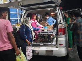 Ketgam: Tim medis kesehatan Puskesmas Tapunggaya Bersama Pemerintah Desa Tapunopaka saat merujuk balita Nurkaira di RS Bahtermas Kendari Indosultra.Com, Konawe ...