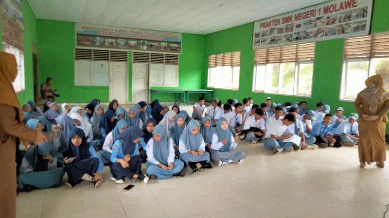 Untuk awal, Sosialisasi Pencegahan Pernikahan Dini berlangsung di SMKN 1 Molawe. Ditempat itu, mulai pimpinan hingga guru-guru menyambut baik sosialisasi yang dilaksanakan. Seluruh murid sekolah pun selaku peserta sangat antusias mengikuti acara tersebut.
