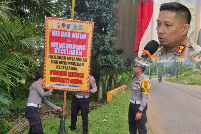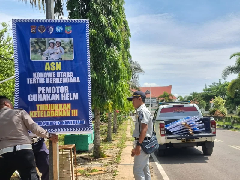 Kapolres Konut, AKBP Rico Fernanda melalui Kasat Lantas, IPTU Aldiansyah As’ad, menyampaikan pemasangan baliho merupakan langkah preventif penting dalam mendorong perubahan perilaku pengendara.