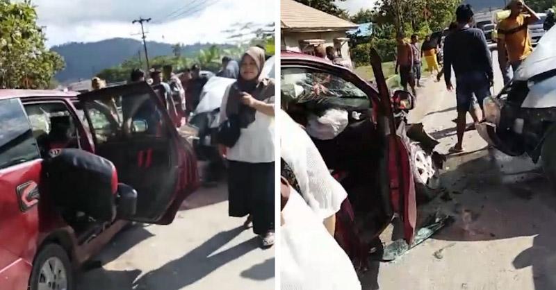 Dalam video yang diterima Indosultra.com, terlihat jelas kondisi kedua kendaraan satu berwarna merah dan satu lagi putih hancur di bagian depan akibat benturan keras.