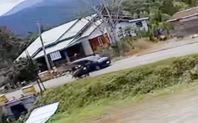Dalam rekaman tersebut, salah satu pengendara motor terlihat berusaha menyalip sebuah mobil di depannya.