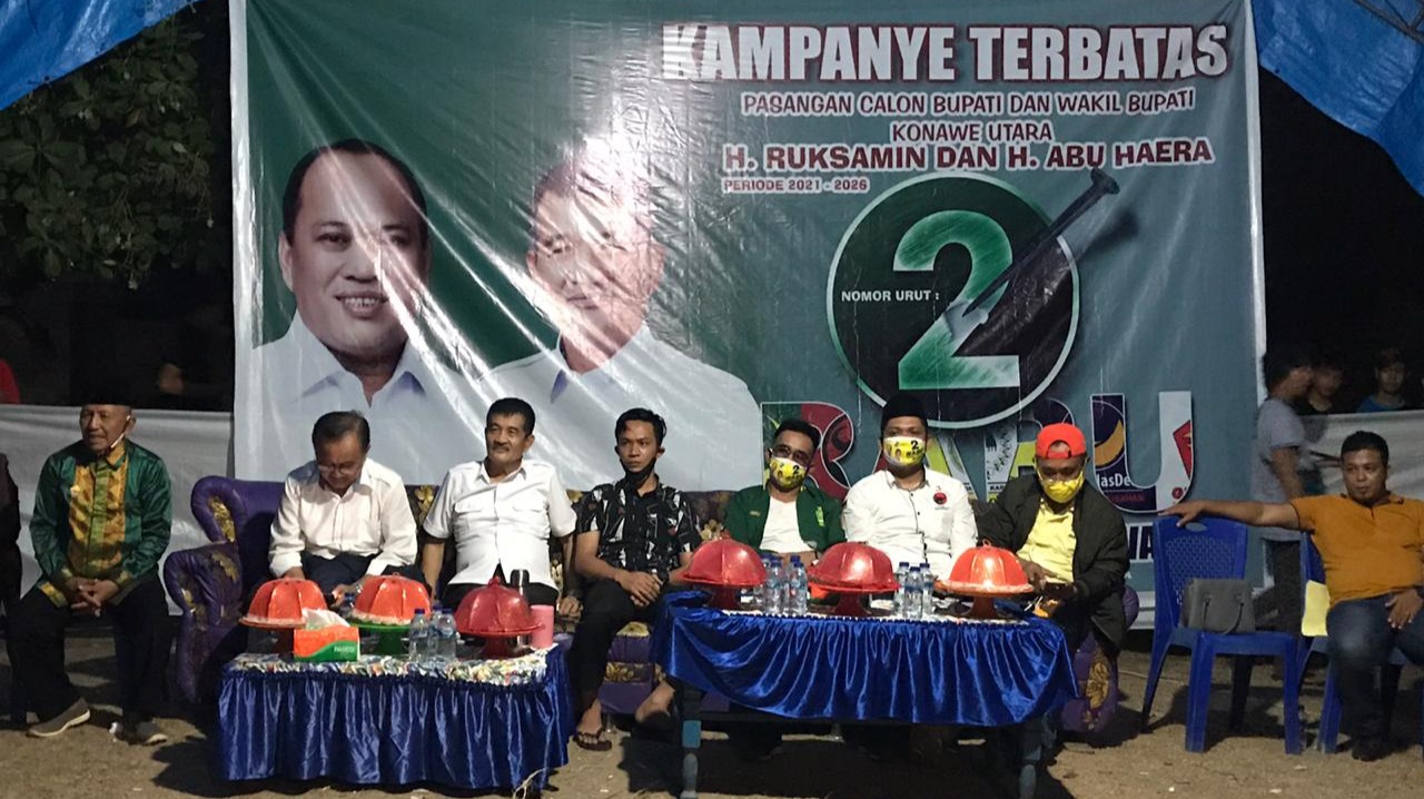 Indosultra.Com,Konawe Utara-Ribuan dukungan massa tumpah ruah memadati area kampanye terbatas gabungan pasangan calon (paslon) Bupati dan Wakil Bupati Konut, Ruksamin-Abu Haera yang berlangsung di Kelurahan Sawa, Desa Ulu Sawa, Laimeo dan Tanjung Laimeo Kecamatan Sawa.