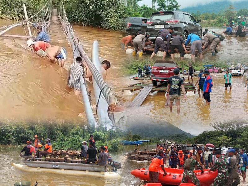 Petugas gabungan siaga banjir dari Pemda Konut, Polres, Kodim 1430, Basarnas, TNI AL, BPBD, Dinas Perhubungan, Dinas Damkar, Satpol, F-PRB, Pramuka, dan ORARI masih masih terus berada di lokasi menangani arus lalulintas, dan membantu masyarakat menyebrang.