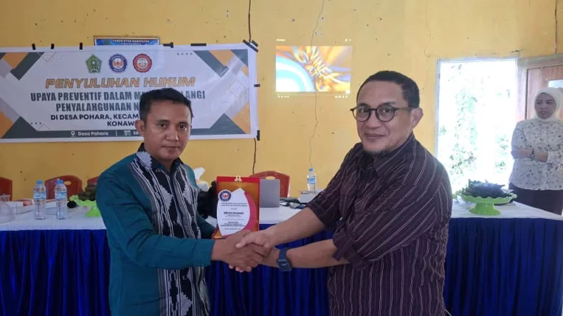 ‎Indosultra.com, Kendari – Tim Pengabdian Masyarakat dari Fakultas Hukum Universitas Halu Oleo (UHO) melaksanakan kegiatan penyuluhan hukum bertema “Upaya Preventif dalam Menanggulangi Penyalahgunaan Narkotika” di Desa Pohara, Kecamatan Sampara, Kabupaten Konawe, Sulawesi Tenggara (Sultra).