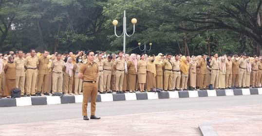 “Mesti dipahami bersama bahwa pelaksanaan apel gabungan merupakan salah satu sarana untuk terus memilih arah dan komitmen dan meningkatkan kedisplinan pegawai dalam rangka mendorong peningkatan kinerja dan pelayanan yang lebih baik kepada masyarakat”, tuturnya.