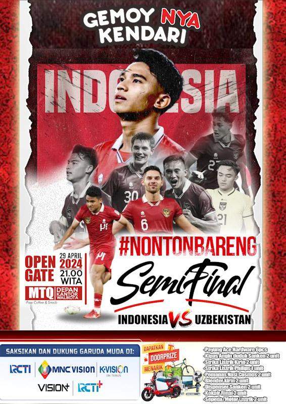 Piala AFC u23 telah memasuki babak semifinal yang mempertemukan Indonesia u23 VS Uzbekistan u23. setelah kami menghubungi via whatshapp pemilik tagline GEMOY NYA KENDARI bapak Yudhianto Mahardika membenarkan adanya kegiatan Nobar tersebut setelah dikonfirmasi