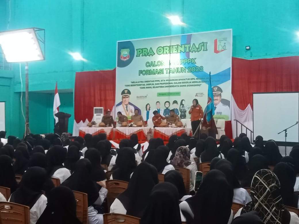 Acara itu, berlangsung di Gedung Olahraga (GOR) Wanggudu, Selasa 6 Februari 2024. Para pegawai P3K mengikuti pra orientasi setelah dinyatakan lolos dan telah mengikuti semua tahapan seleksi.