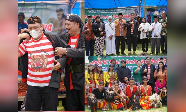 Ketgam: Suasana acara Pentas Seni Suku Jawa dan Halal Bihalal serta penyematan kostum kebesaran Suku Jawa kepada Bupati Konut Ruksamin.