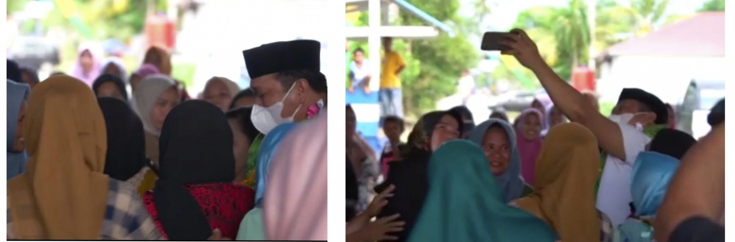 Mengabadikan momen tersebut, emak-emak langsung mengerumuni Ruksamin dan ajak foto selfie bersama.