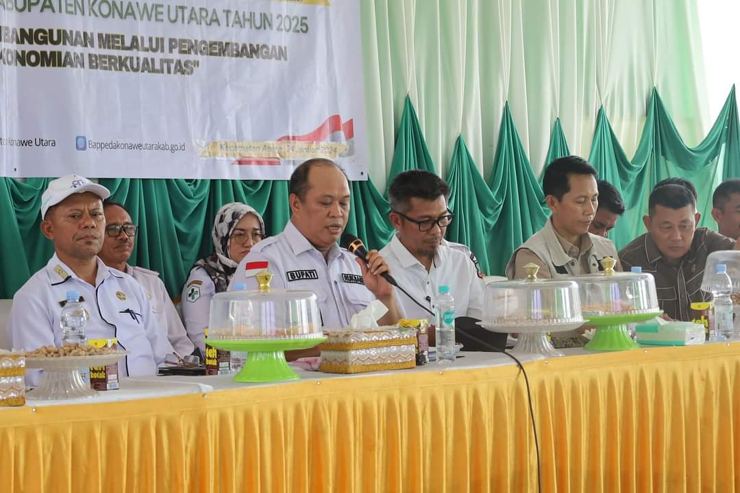Indosultra.Com, Konawe Utara – Bupati Konawe Utara (Konut), Sulawesi Tenggara (Sultra), Ruksamin terus mengekspresikan komitmennya untuk pengembangan daerah dengan melanjutkan agenda Musyawarah Rencana Pembangunan (Musrenbang) tingkat kecamatan.