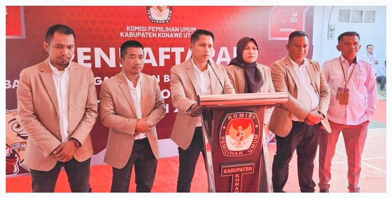 Kedatangan Kedua pasangan calon Bupati Dan Wakil Bupati Konut di Kantor KPU ini diantar oleh para pendukung dan pimpin, serta anggota partai pengusung dari Partai Kebangkitan Bangsa, Partai Nasdem, Dan Partai Gerindra.