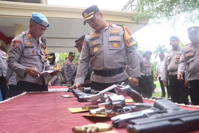 Pengecekan ini dilakukan secara menyeluruh, mulai dari pemeriksaan fisik senpi, kelengkapan administrasi, hingga kondisi amunisi yang dimiliki oleh setiap personel.