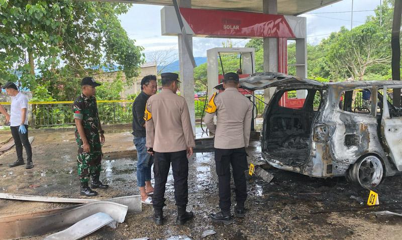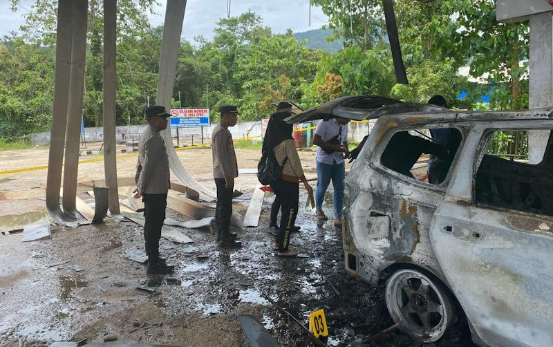 Polres Konawe Utara telah melakukan olah tempat kejadian perkara (TKP) dan mengamankan barang bukti berupa mobil Wuling DD 1528 VJ serta sepeda motor Honda tanpa identitas yang ikut terbakar.