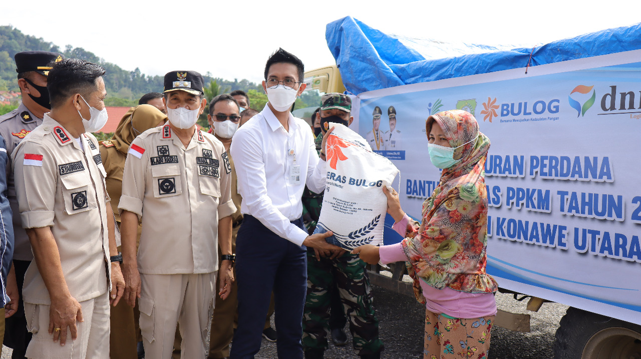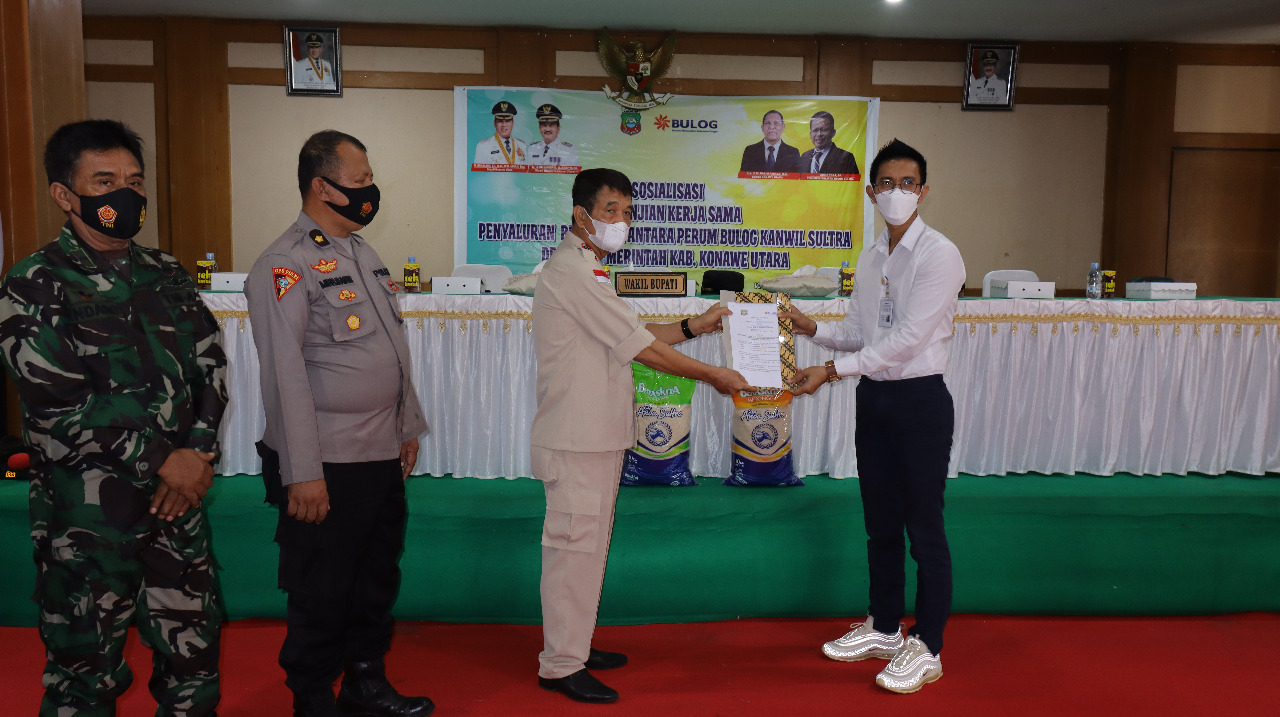 Kegiatan itu, diakhiri dengan penyerahan surat perjanjian kerja sama antara Pemda Konut dan Perum Bulog, dan pelepasan mobil yang akan menyalurkan bantuan beras PPKM 2021 bagi masyarakat Konut.