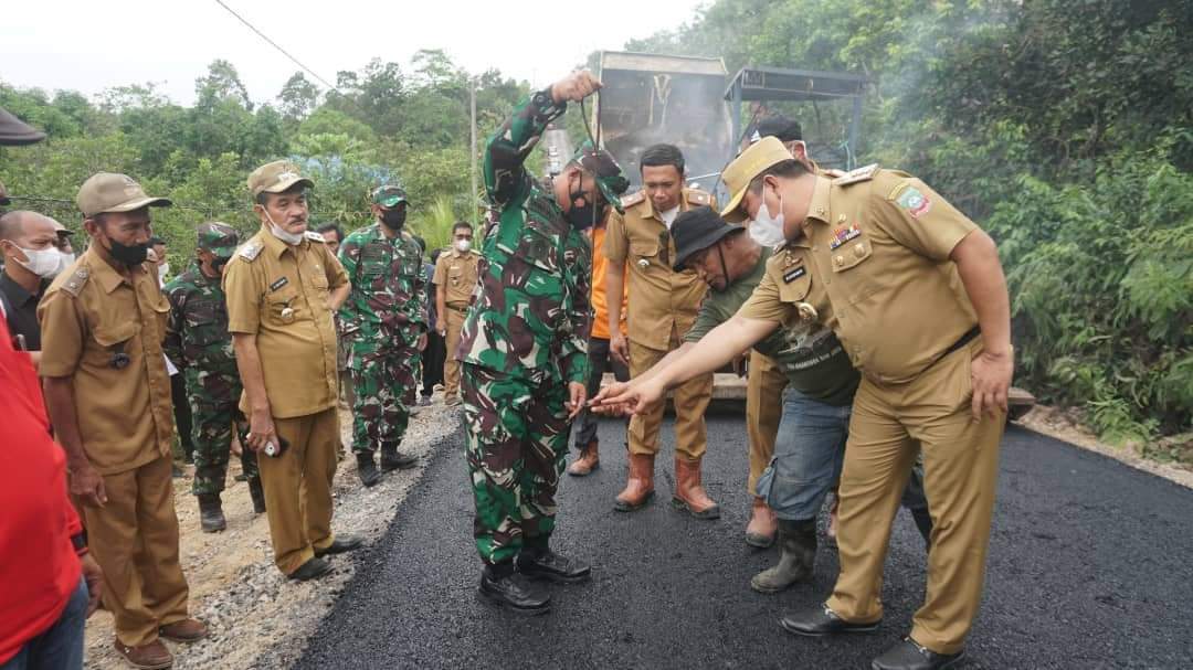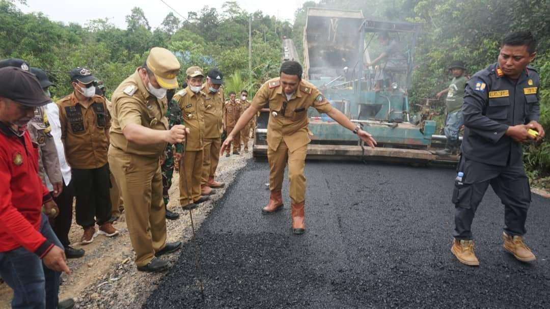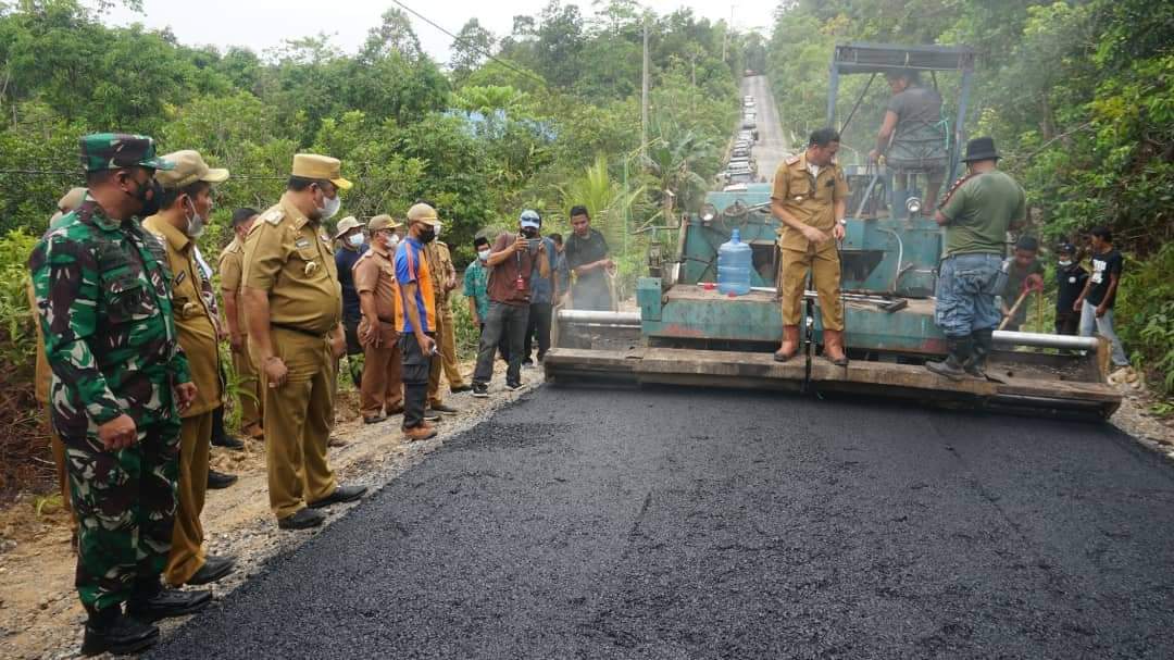 Ketgam: Bupati Konut, Ruksamin bersama Wakil Bupati Konut, Abu Haera, Dandim 1417/kendari Ketua dan Anggota DPRD, serta jajaran Forkopimda Konut saat meninjau pengaspala jalan di Desa Punggulahi. (Indosultra.Com)