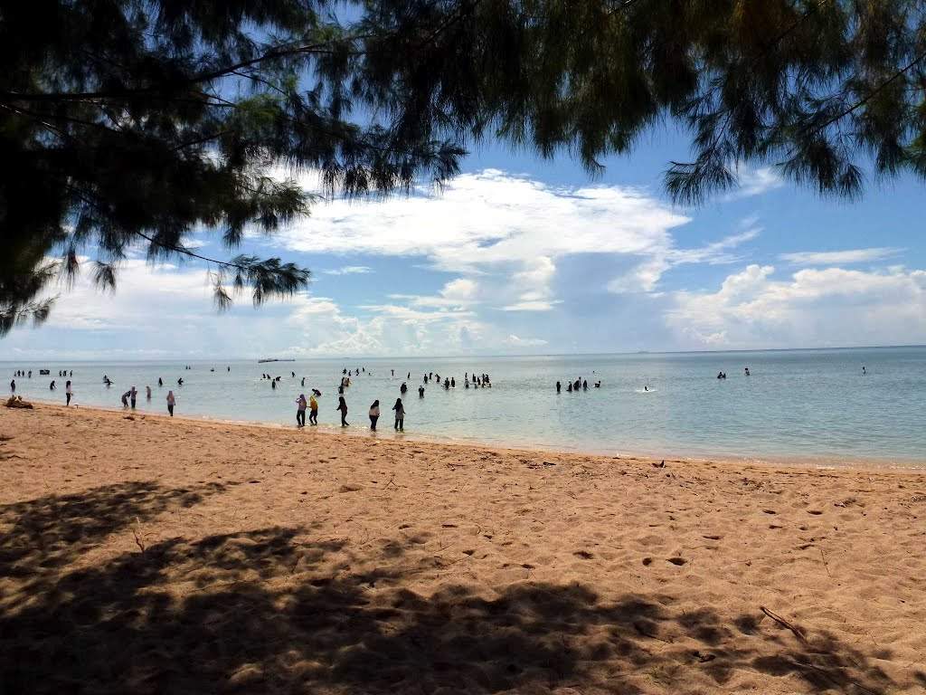 Tampak ratusan warga diberbagai daerah datang di Pantai tersebut untuk merefresikan diri setelah melakukan aktivitas belajar di sekolah.