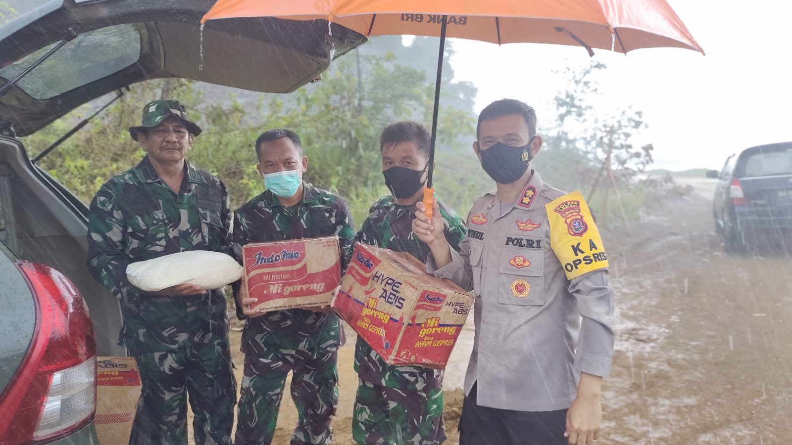 Jiwa Sosial Kapolres Konut, Ditengah Hujan Deras Turun Langsung Salurkan Bantuan Untuk Prajurit TNI