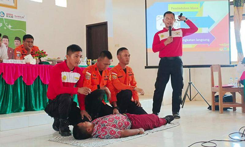 Lebih jauh dijelaskan Dedi, kegiatan diperaktekkan secara langsung kepada para siswa sekolah dengan menggunakan alat penangan bencana yang disiapkan oleh tim Basarnas.
