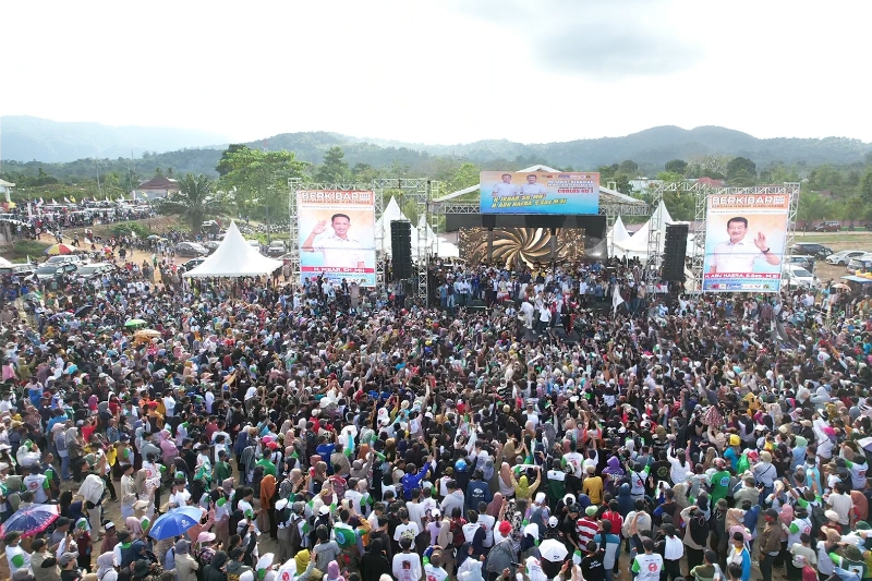 Kampanye akbar pasangan dengan tagline BERKIBAR ini di banjir puluhan ribu massa yang tersebar di 13 kecamatan, 159 desa, 11 kelurahan.