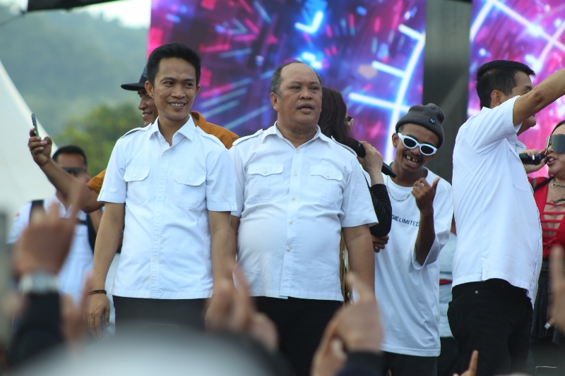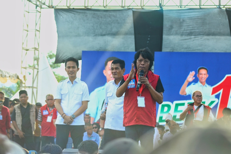 Puluhan ribu massa pendukung paslon Ikbar-Abu Haera berbondong-bondong memasuki lapangan kegiatan dengan meneriakkan yel-yel kemenangan.