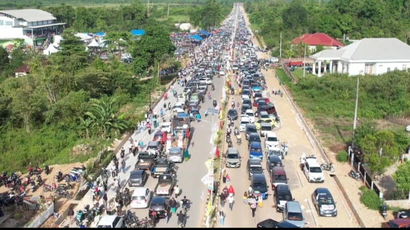 Dari pantauan awak media, kondisi arus lalulintas macet dikarenakan adanya iring-iringan puluhan ribu kendaraan yang menuju ke acara tersebut.
