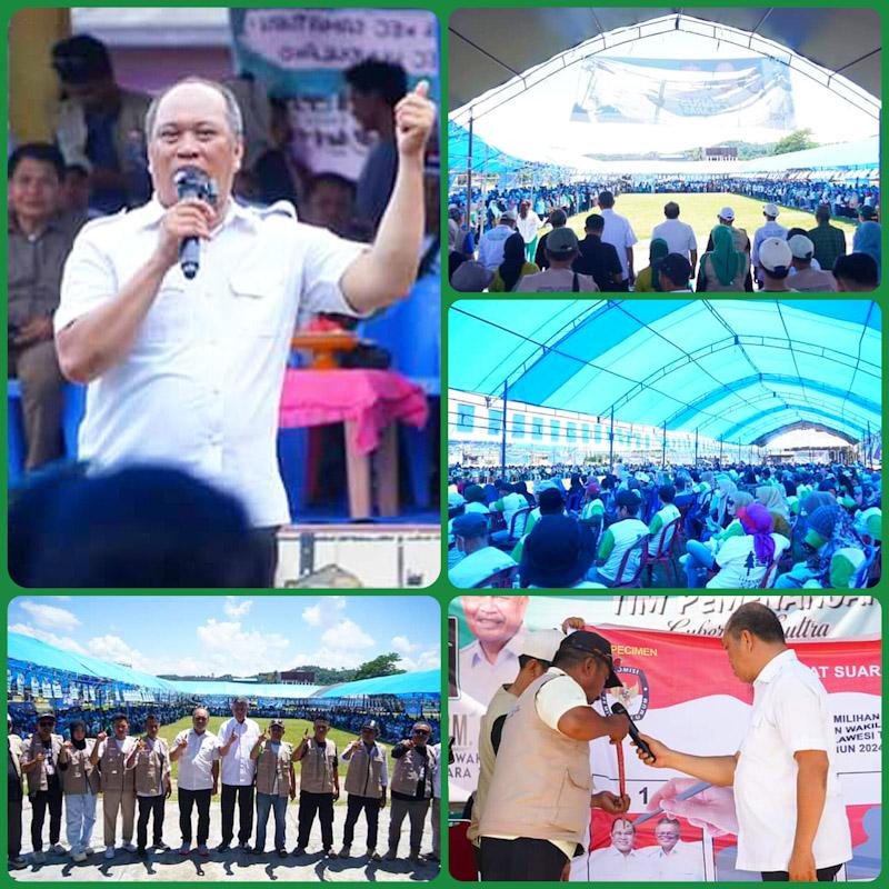 Indosultra.com, Kolaka Timur – Kampanye terbuka pasangan calon (Paslon) Gubernur dan Wakil Gubernur Sulawesi Tenggara nomor urut Satu, H. Ruksamin dan H. L.M. Sjafei Kahar, berlangsung dengan aman dan kondusif di Lapangan Latamoro, Kelurahan Rate-Rate, Kecamatan Tirawuta, Kabupaten Kolaka Timur, pada Senin (4/11/2024).