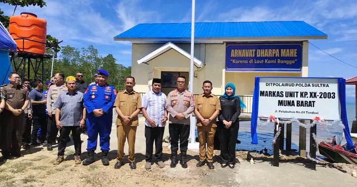Indosultra.com, La woro, -Kepolisian Daerah Sulawesi Tenggara bersama Bupati Muna Barat meresmikan Markas Unit Kepolisian Perairan dan Udara (Polairud) Muna Barat yang berlokasi di Pelataran Pelabuhan Tondasi, Selasa (15/4/2025).