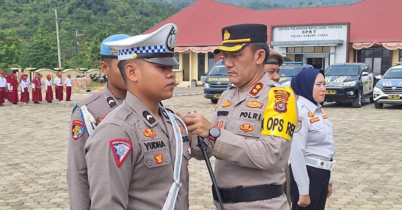 Gelar pasukan operasi keselamatan 2024 dihadiri forum komunikasi pimpinan daerah (Forkopinda) Kabupaten Konut, pejabat utama polres Konut, para Kapolsek jajaran, serta para guru SMA, SMP dan SD di Konawe utara