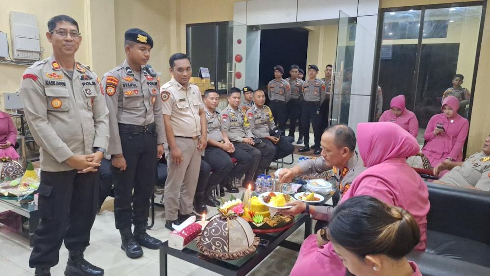 Usai upacara kenaikan pangkat Kapolres Konut AKBP Priyo Utomo, S.H., S.I.K bersama Ketua Bhayangkari Cabang Konawe utara pimpin syukuran personel yang naik pangkat serta perayaan ulang tahun 21 orang personel yang lahir bulan juni