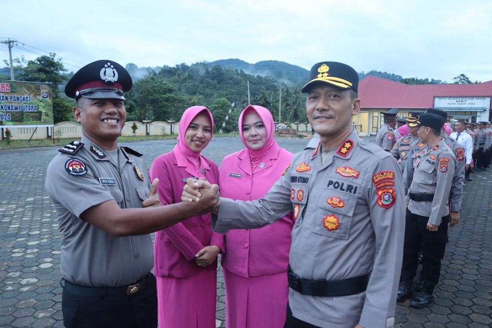Ini merupakan wujud perhatian dan penghargaan dari institusi Polri atas pengabdian yang sungguh-sungguh khususnya personel Polres Konawe utara, kenaikan pangkat bukan sekedar penghargaan namun amanah yang harus dijaga dan dipertanggungjawabkan pada diri, keluarga, masyarakat dan Tuhan Yang Maha Esa “ungkap Kapolres Konut.