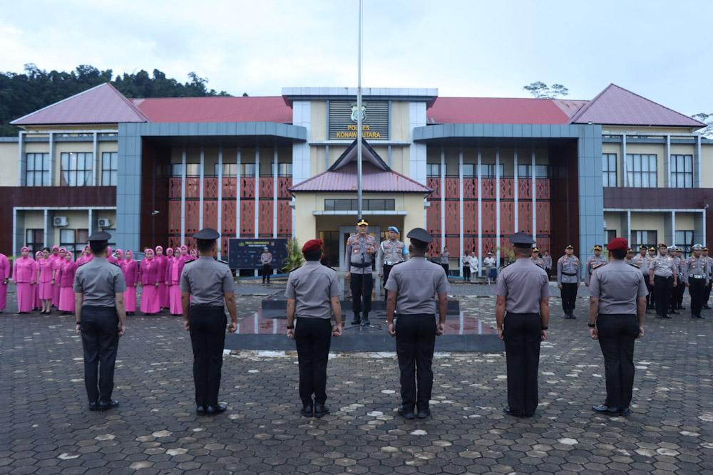 Indosultra.Com, Konawe Utara – Kepala Kepolisian Resor (Kapolres) Konawe Utara (Konut) AKBP Priyo Utomo, S.H., S.I.K pimpin upacara korps raport kenaikan pangkat personel bertempat di lapangan Apel Mapolres Konut Kelurahan Wanggudu Kecamatan Asera, Minggu (30/6/24) sekira pukul 16.30 wita