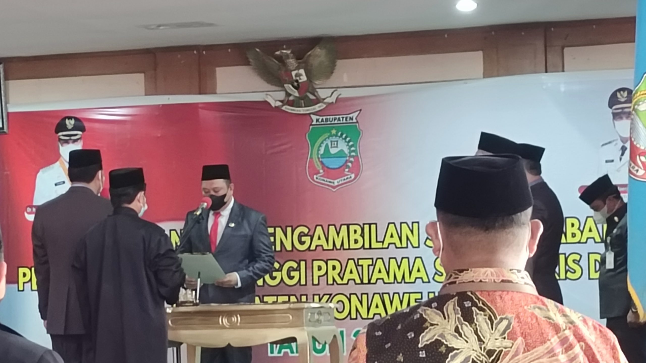 Hal itu, ditandai dengan berlangsungnya pelantikan dan pengambilan sumpah jabatan/janji jabatan Sekda Konut di Aula Anawai Ngguluri, (12/8/2021). Sebelumnya dilakukan seleksi terbuka pimpinan pejabat tinggi pratama.