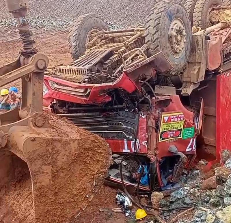 Dalam kejadian terbaru, sebuah dump truck berwarna merah dilaporkan terbalik di lokasi proyek, menyebabkan sopir kendaraan mengalami luka serius dan harus segera dilarikan ke Rumah Sakit Umum Daerah (RSUD) Kolaka untuk mendapatkan penanganan medis.