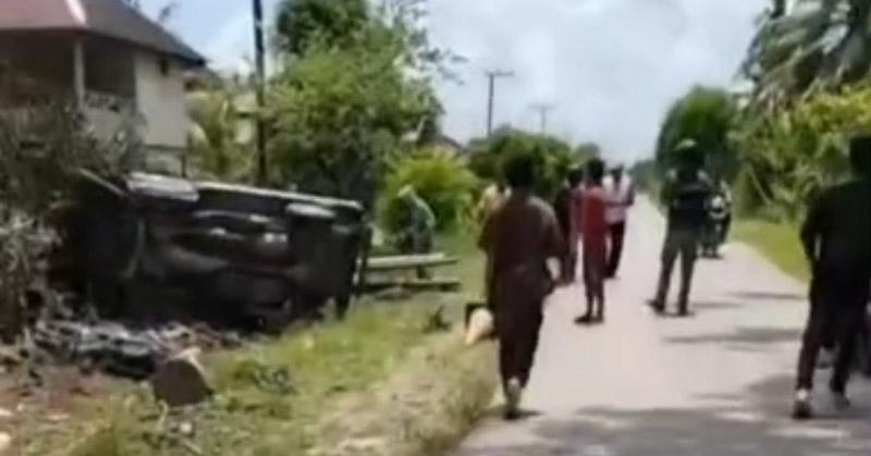 peristiwa nahas itu terjadi saat mobil Suzuki Carry berwarna hitam dengan nomor polisi DT 9112 BC yang dikemudikan oleh Harfin (30), melaju dengan kecepatan tinggi dari arah utara menuju selatan.