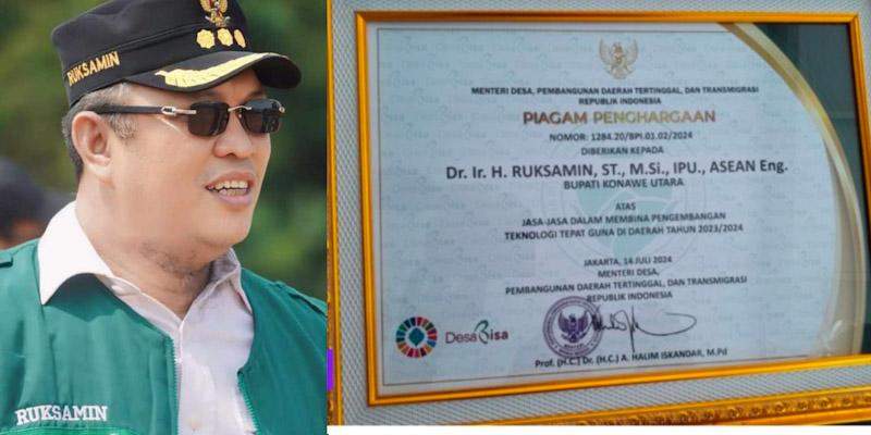 Inovasi yang disajikan itu, yang dipimpin langsung Bupati Konut, dengan nama lengkap Dr. Ir. H. Ruksamin, ST., M.Si., IPU., ASEAN. Eng. dalam Gelar Teknologi Tepat Guna Nasional ke-XXV Tahun 2024 ini akhirnya berhasil meraih Piagam Penghargaan dari Kementrian Desa, Pembangunan Daerah Tertinggal dan Transmigrasi.
