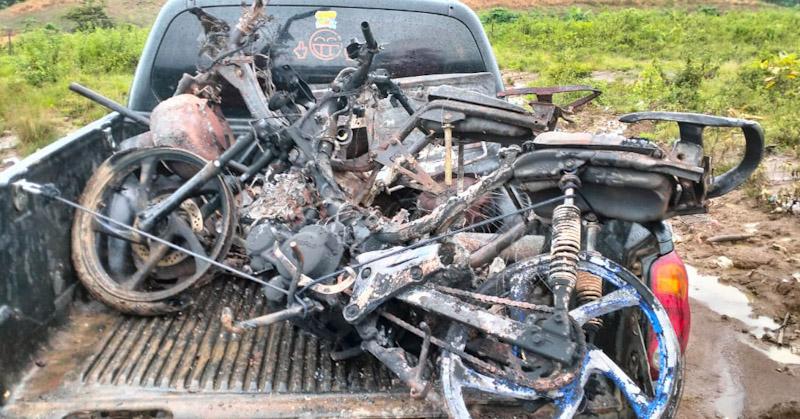 2 (dua) unit rangka motor yang telah hanggus dan 8 (delapan) buah tabung gas elpiji 3 kg kami amankan sebagai barang bukti “terangnya.
