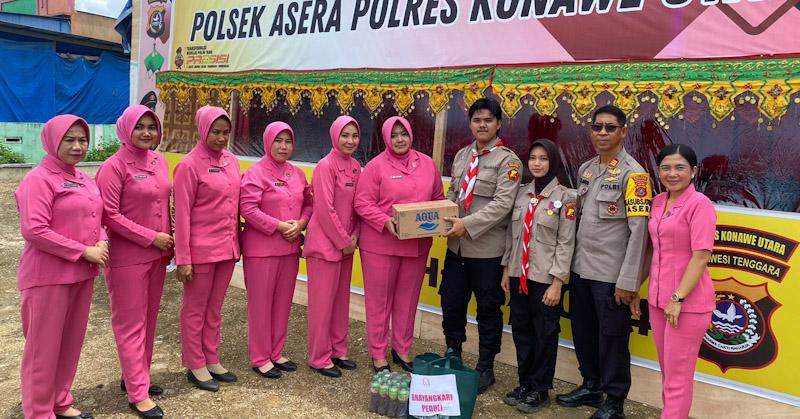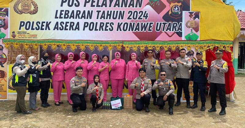 Kunjungan pertama Ketua Bhayangkari Cabang dan pengurus di Pospam Operasi Ketupat 2024 Polsek Asera bertempat di Kelurahan Andowia selanjutnya menuju Pospam Polsek Lasolo dan Pospam Polsek Sawa