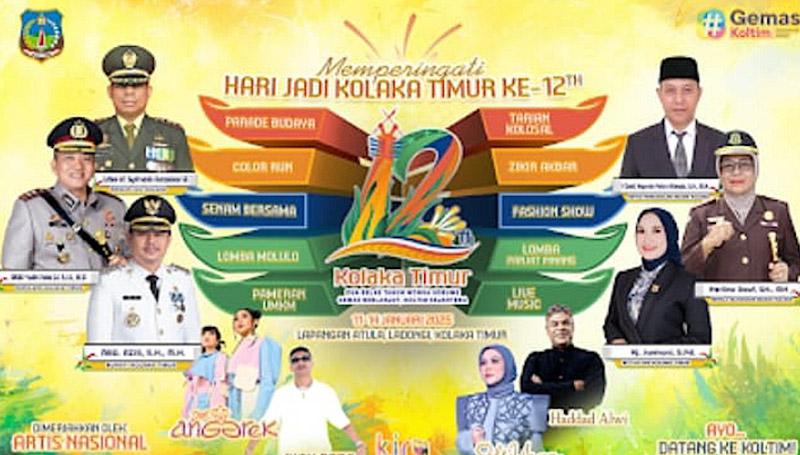 Pada tanggal 12 Januari, kegiatan akan dimulai dengan acara kelaran, yang merupakan jalan santai untuk merayakan HUT Koltim. Selain itu, terdapat berbagai pertunjukan seni, termasuk penampilan tarian daerah yang akan menghibur pengunjung. Salah satu yang paling dinantikan adalah penampilan pesenswo, yang merupakan tradisi khas Kolaka Timur dan akan dibawakan oleh Asosiasi Tatarias lokal. Selama acara berlangsung, pihak panitia tetap menjaga koridor kesopanan dan ketertiban agar semua orang bisa menikmati acara dengan nyaman.