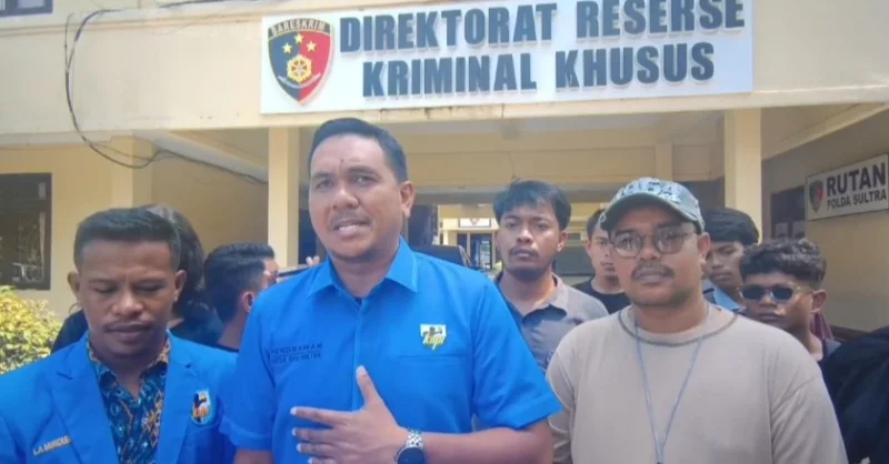 Indosultra.com, Kendari – Ketua Komite Nasional Pemuda Indonesia (KNPI) Provinsi Sulawesi Tenggara (Sultra), Hendrawan Sumus Gia, resmi melaporkan Kepala Dinas Komunikasi dan Informatika (Kominfo) Sultra, Ridwan Badallah, ke Polda Sultra.
