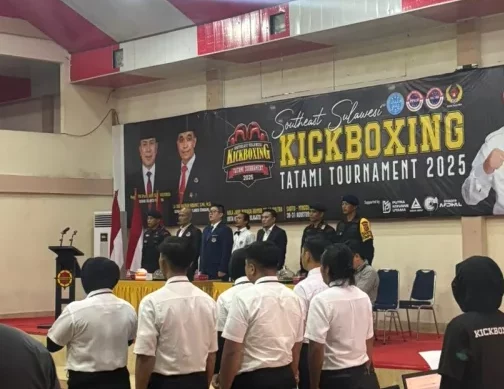 Indosultra.Com, Konawe Utara – Ketua Komite Nasional Indonesia (KONI) Kabupaten Konawe Utara (Konut), Abu Haera, S.Sos.,M.Si memberikan dukungan penuh kepada para atlet Kickboxing Konawe Utara yang turun berlaga di Turnament Southeast Sulawesi Kickboxing Titami 2025.