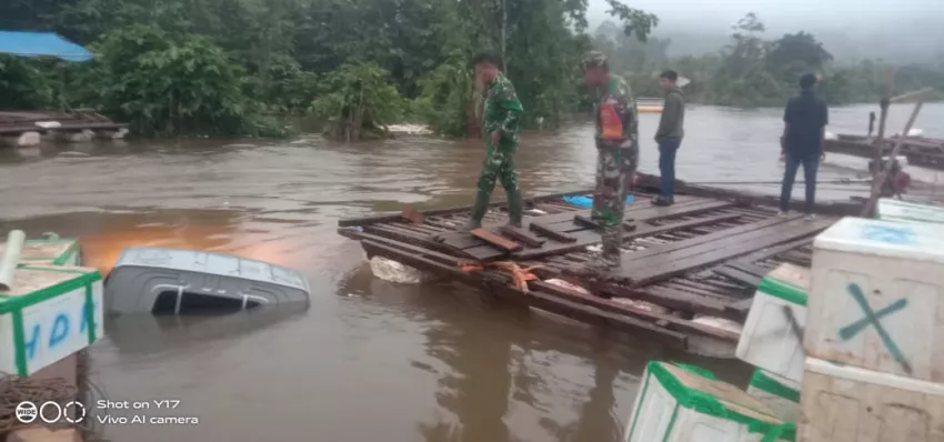 Pengemudi kendaraan berhasil diselamatkan oleh tim dari Kodim dan tim gabungan siaga banjir beserta barang yang dibawa.