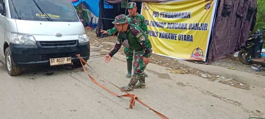 Melihat kondisi itu, tim dari Kodim 1430 Konut bersama tim gabungan siaga banjir Pemda Konut, Polres, Basarnas langsung melakukan pertolongan kepada pengemudi mobil.