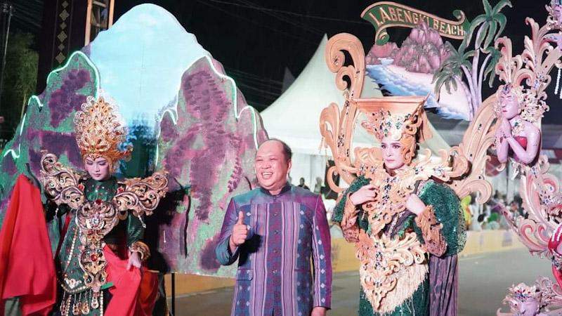“Konsep tenunan yang dikenakan merupakan produk asli daerah yang didesain-rancang oleh komunitas kreatif dengan menggali filosofi makna dan nilai kearifan legenda yang tergambar utuh dalam karnaval ini,”kata Kabag Umum Konut, Ery Husaini.