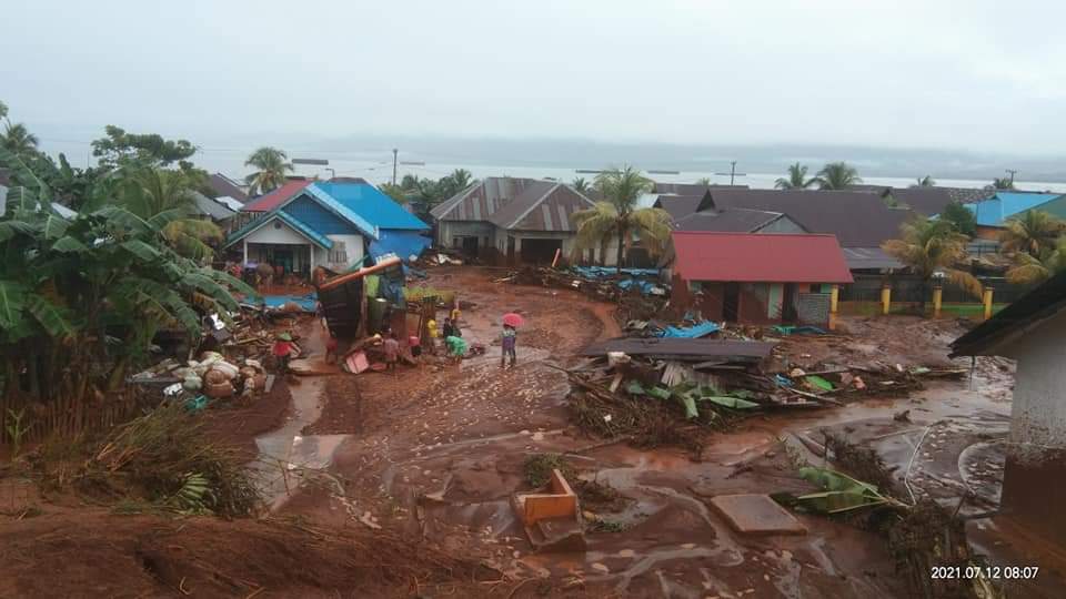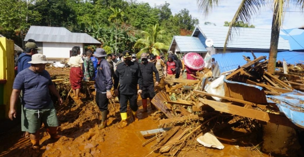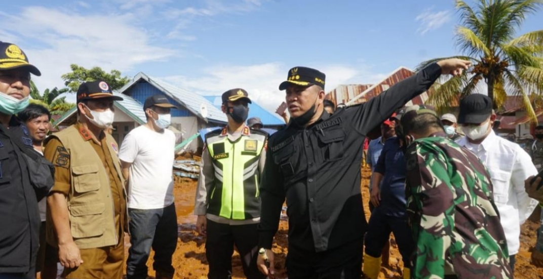 Indosultra.Com, Konawe Utara-Bupati Konawe Utara (Konut), Sulawesi Tenggara (Sultra), Ruksamin bergerak cepat membantu para korban tanah longsor di Desa Tapunggaya, Kecamatan Molawe, yang diduga disebabkan jebolnya tanggul milik perusahaan tambang PT Cinta Jaya yang beroprasi disekitar desa itu.