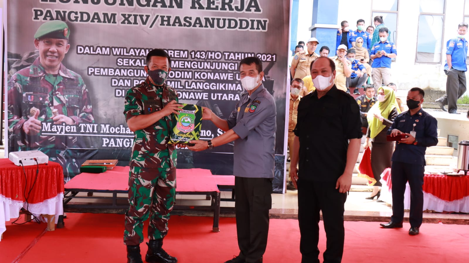 Kedatangan jenderal bintang dua ini bersama romobongan pejabat tinggi TNI, disambut langsung Bupati Konut, Ruksamin didampingi Wakil Bupati Konut, Abu Haera, Sekda Konut, Kasim Pagala, Ketua DPRD Konut, Ikbar, Kepala SKPD Konut, Kapala Pos BIN Daerah Konut, dan unsur pimpinan Polres dan TNI wilayah Konut.