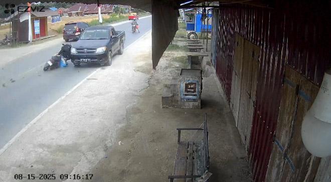 Akibat insiden itu satu pengendara motor beat terpental dimobil jenis hilux hitam hingga alami kejang – kejang saat kejadian.