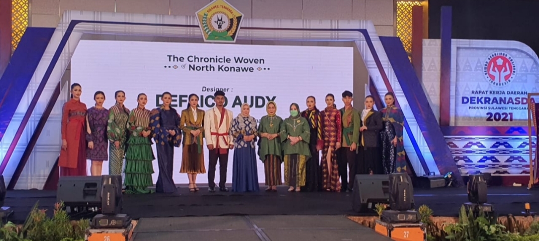 Defrico Audi, menjadi partner/mitra Dekranasda Konut dalam merancang Tenun Konasara menjadi busana konteporer bertaraf internasional.